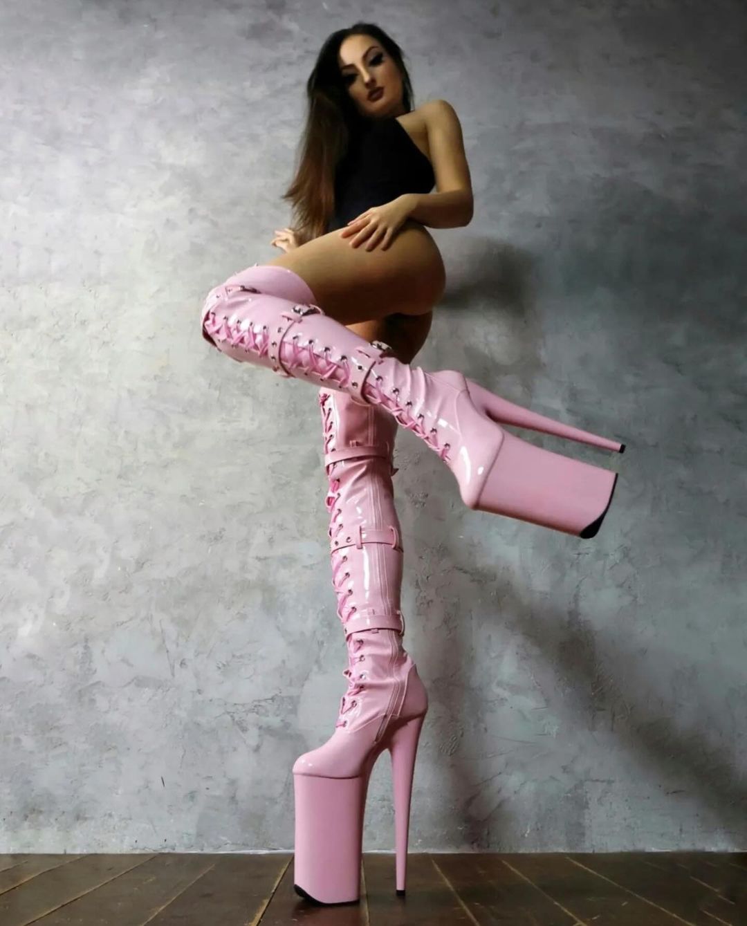Pleaser Stripper Boot Infinity-3028 Stretch Lace Up Thigh High Boot