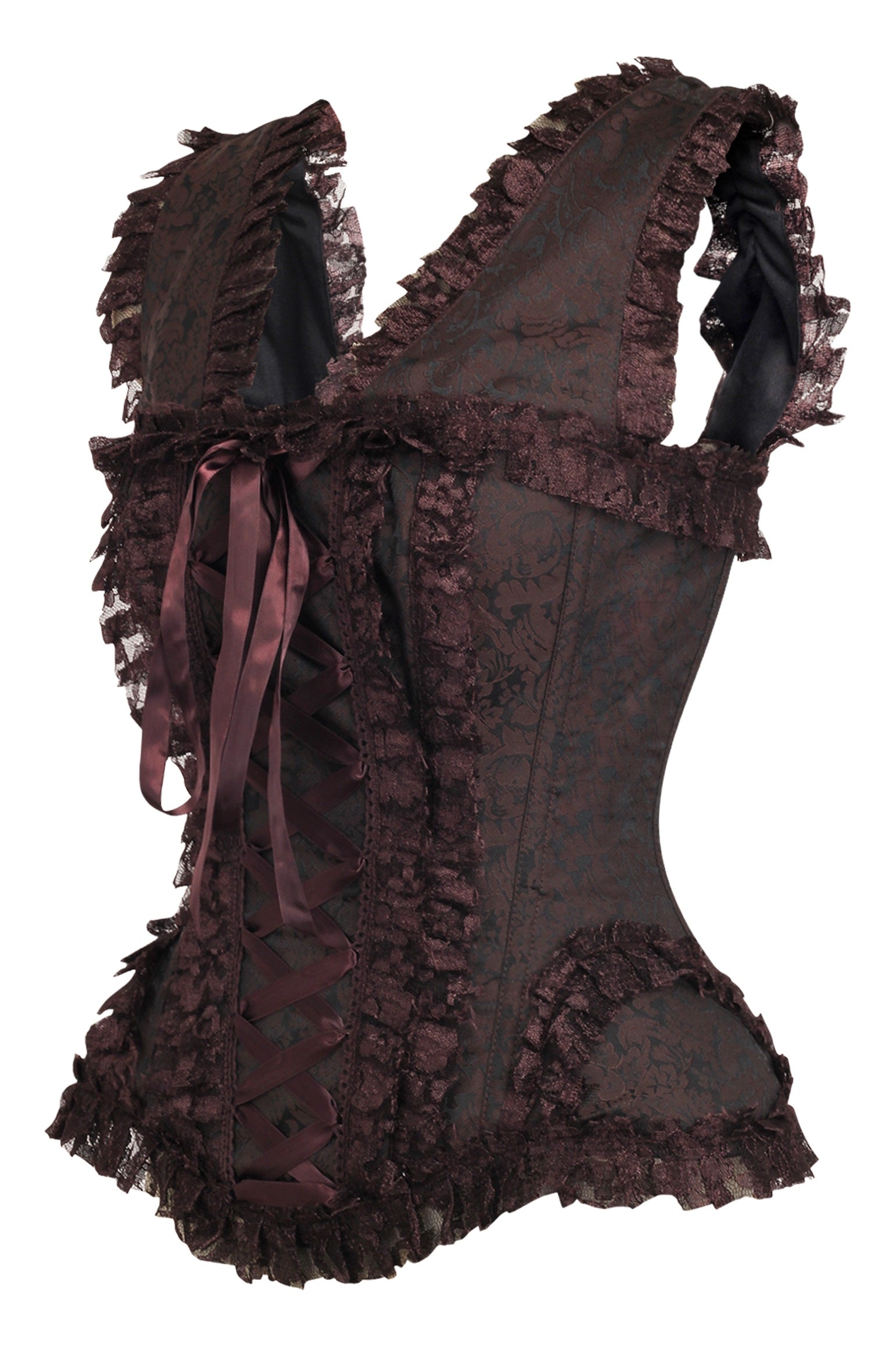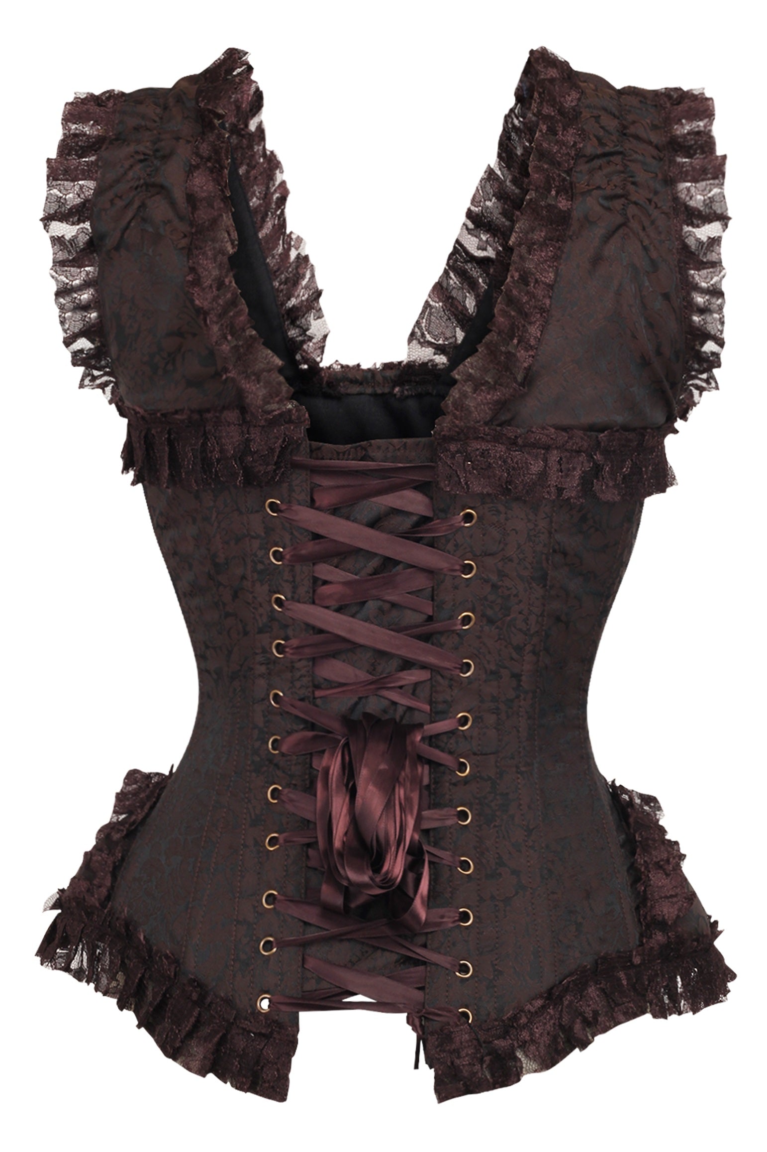 Daisy TD-211 Brown Swirl Brocade & Lace Steel Boned Corset w/Cap Sleeves