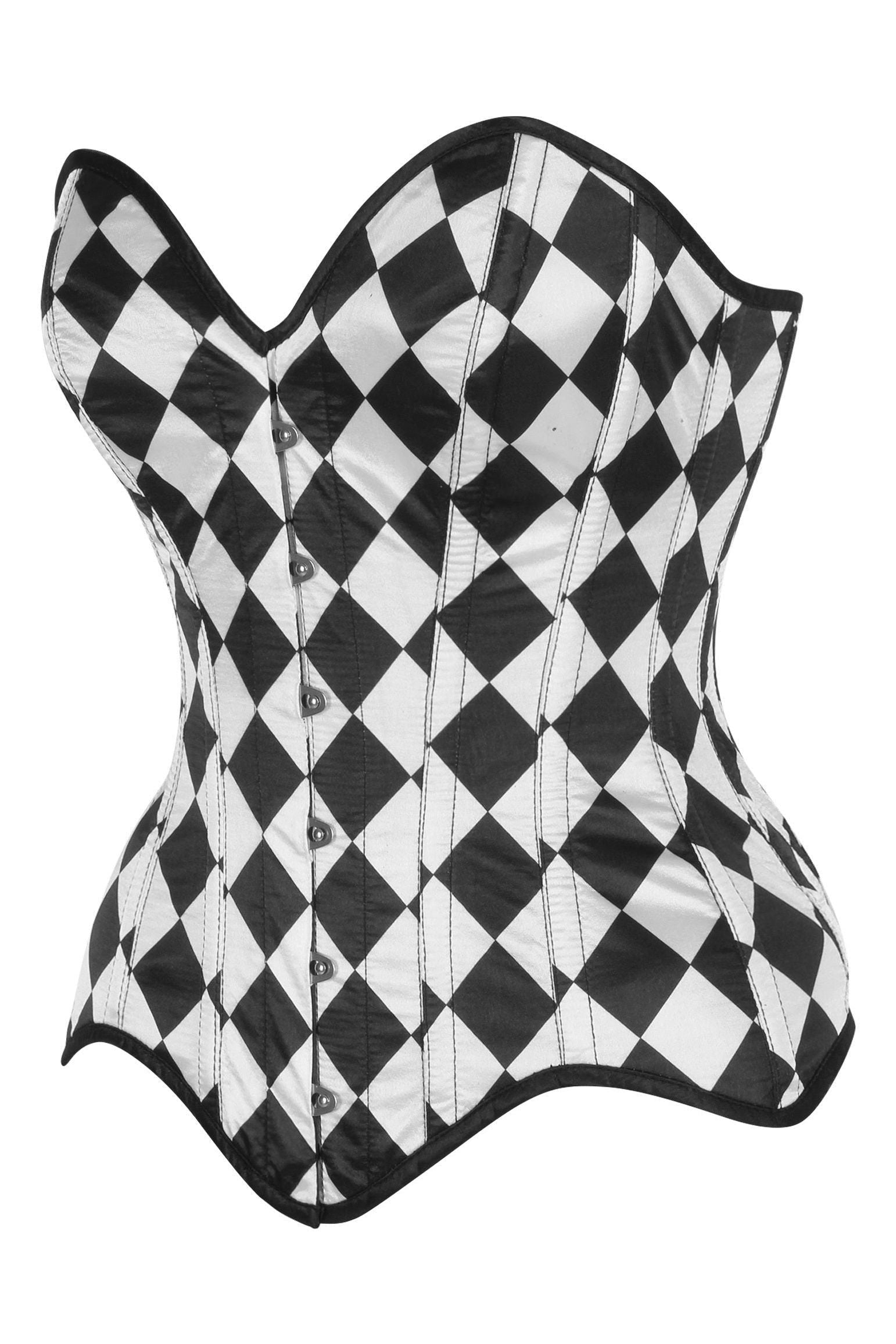 Daisy Diamond Print Satin Steel Boned Overbust Corset