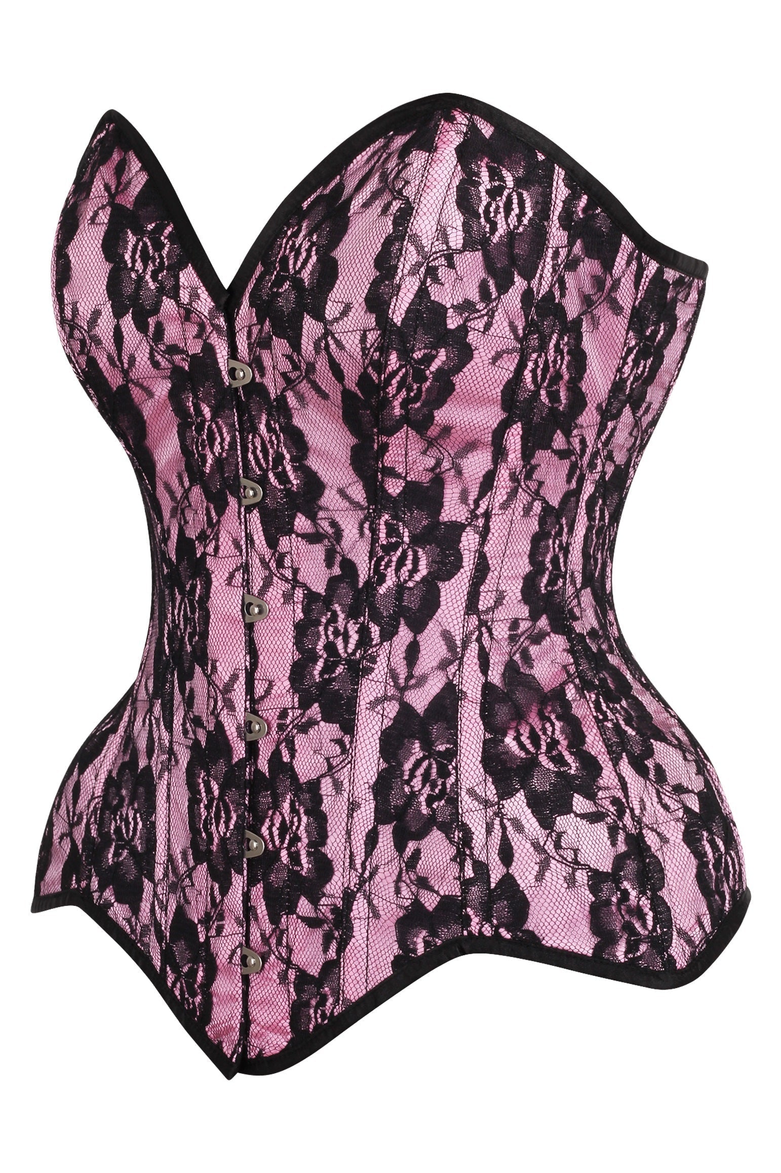 Daisy TD-235 Pink Satin w/Black Lace Overlay Steel Boned Overbust Corset
